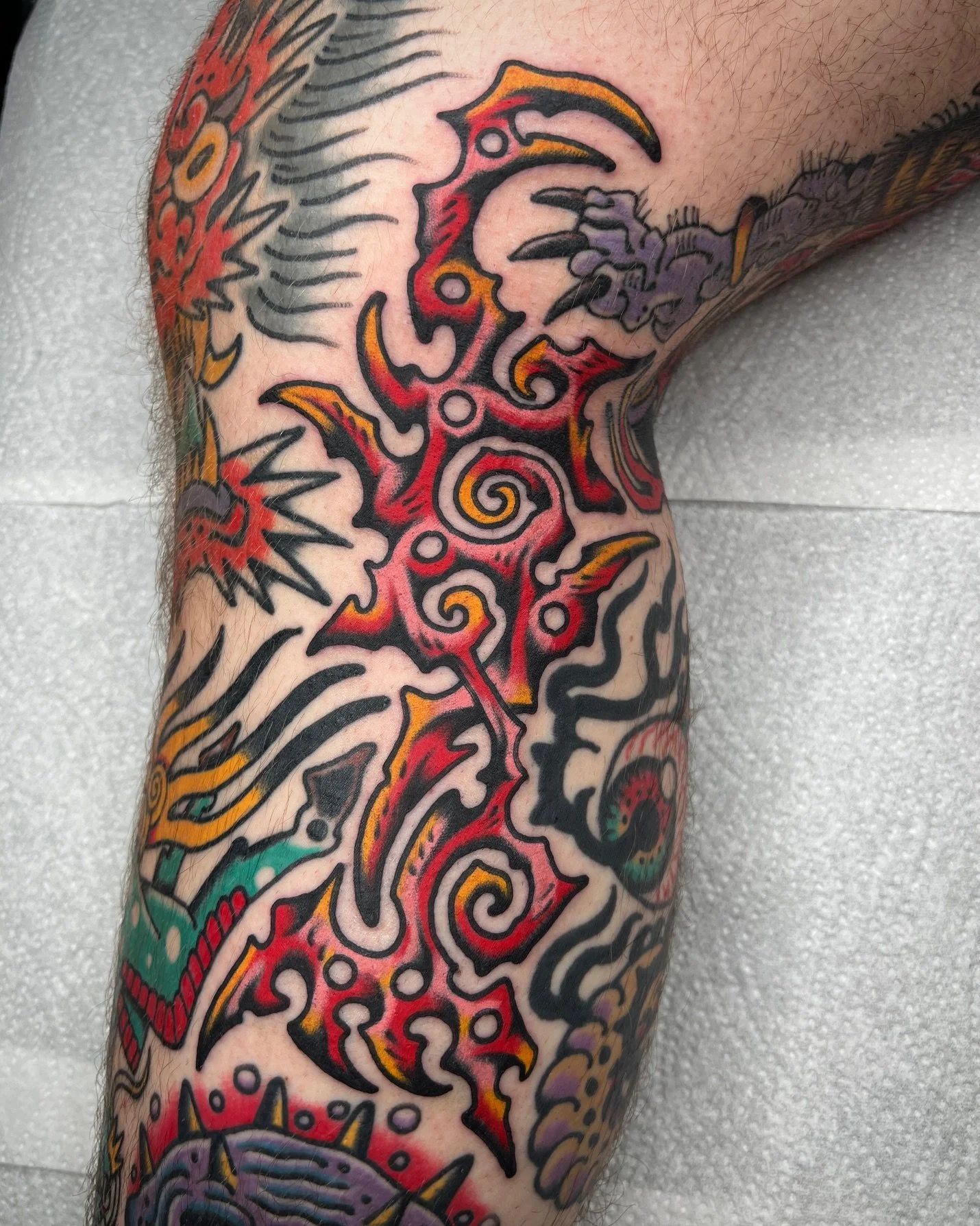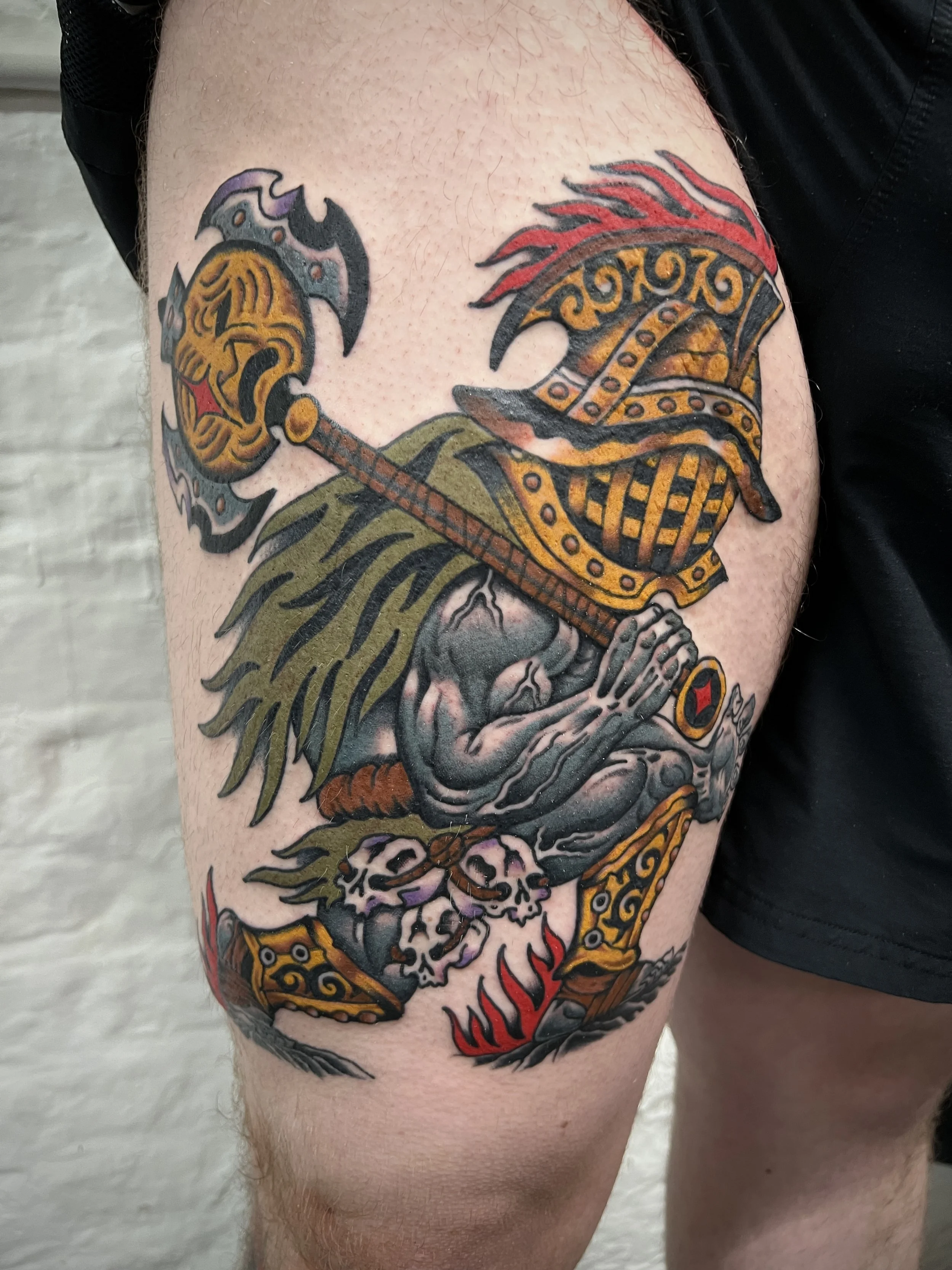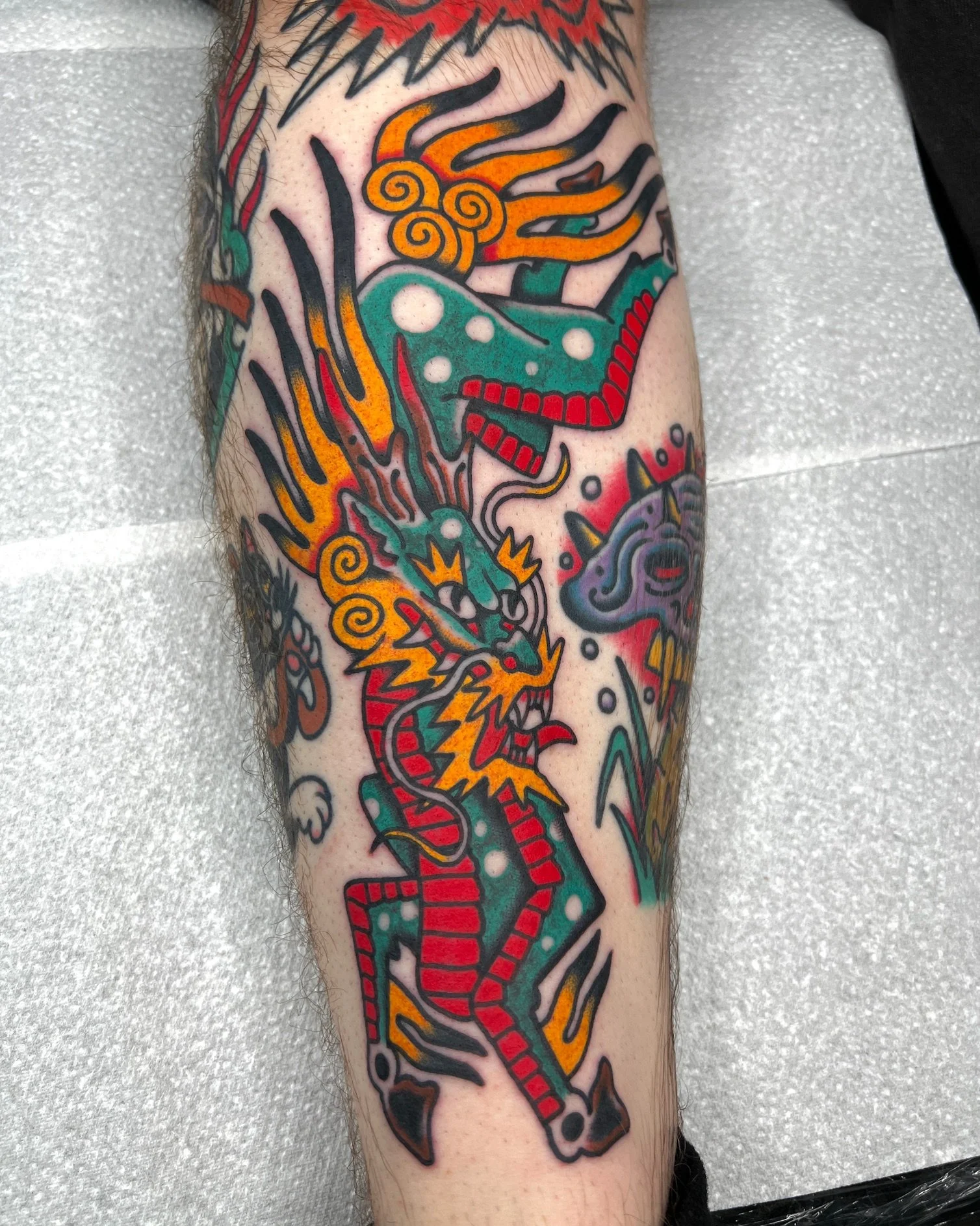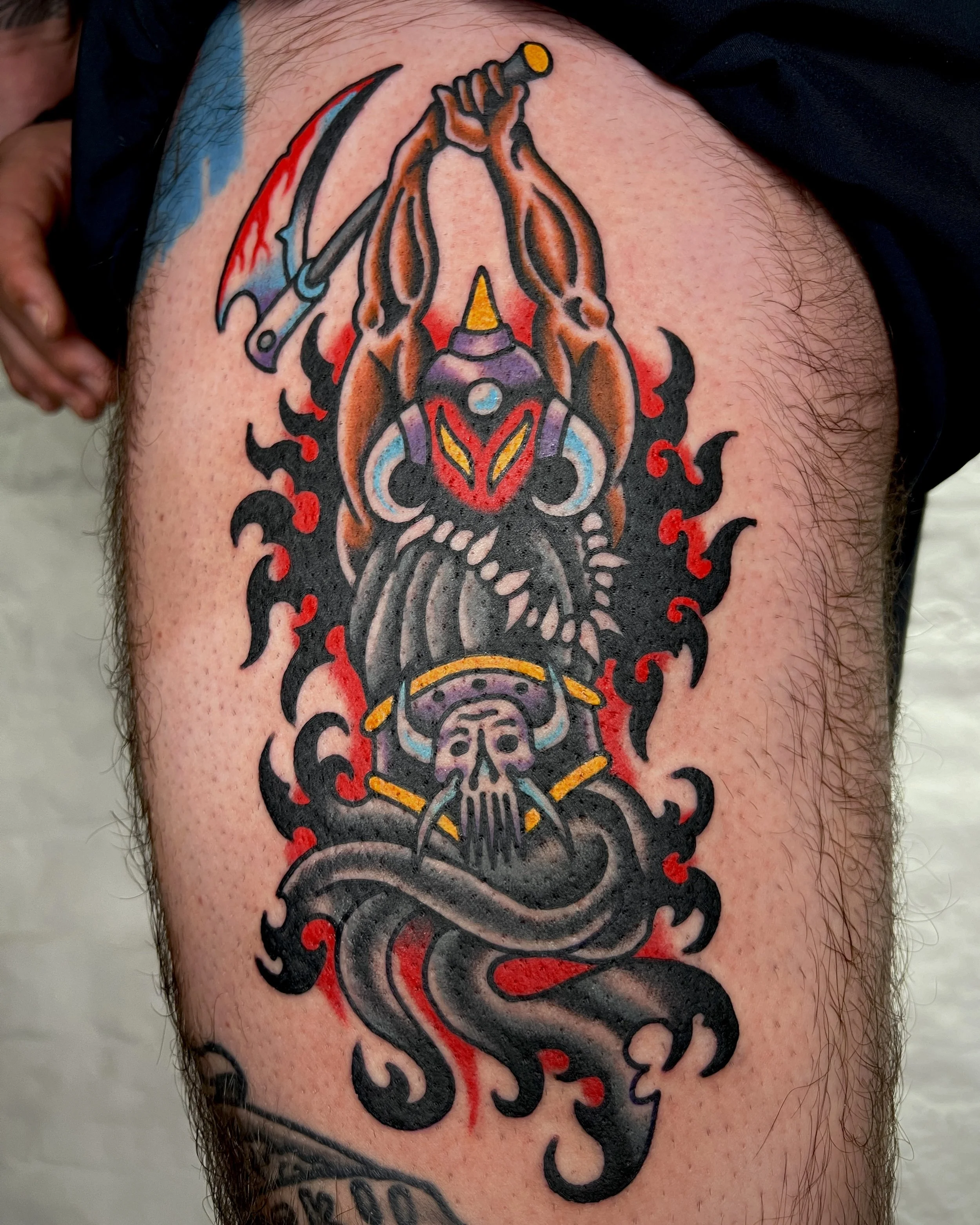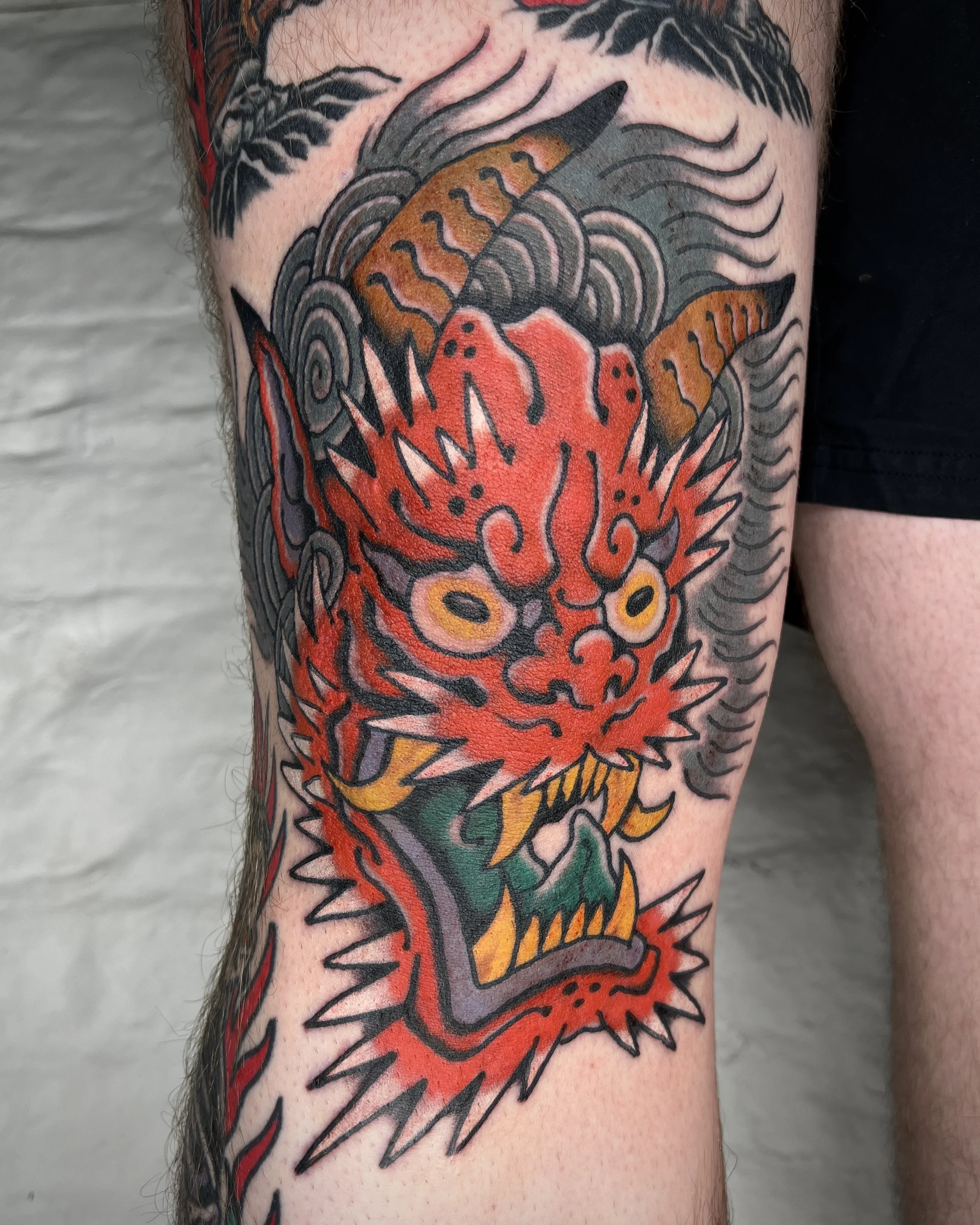He enjoys tattooing a bright poppy version of traditional. He draws inspiration from Japanese work, video games, movies and old cartoons to create his unique style. Dom always tries to push himself out of his comfort zone and likes to tattoo in as many styles as possible. This keeps Dom’s work forever evolving.